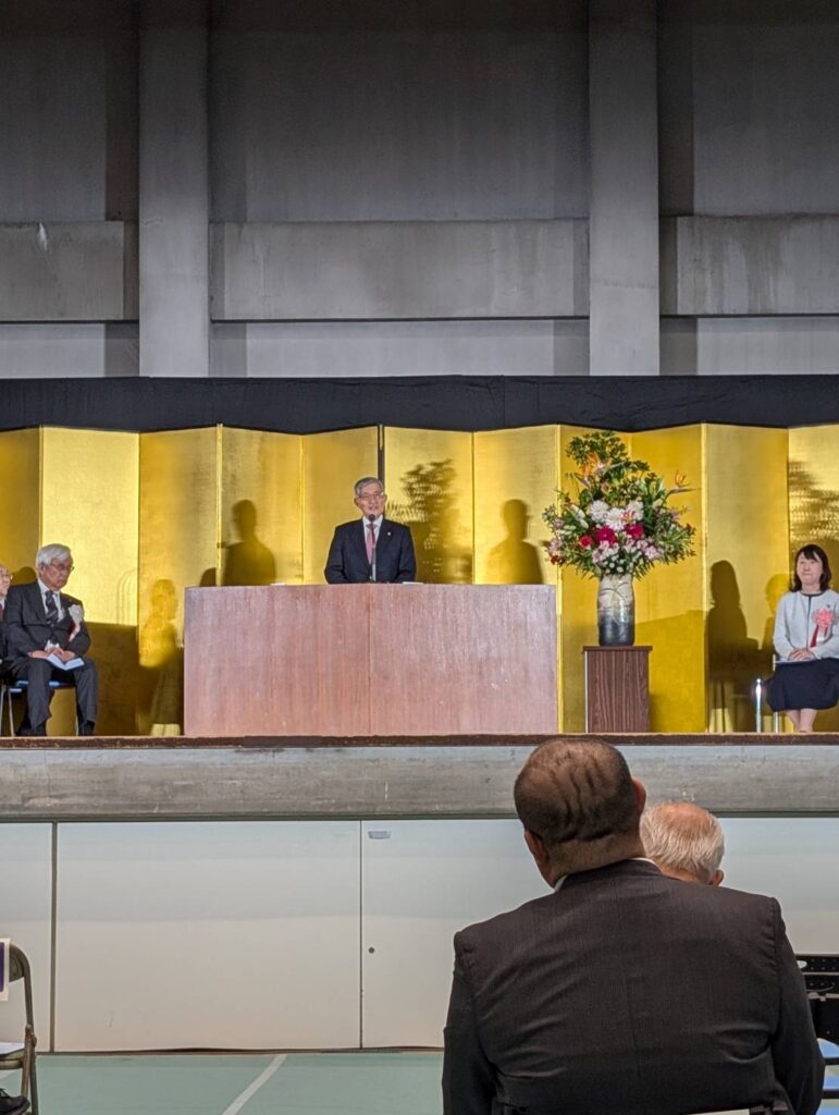 ![]() 懇親会 | ![]() 退任者記念品贈呈(懇親会にて) |
